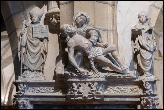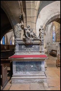 de Notre Dame de Pitié au sud. Il a conservé son retable en pierre sculptées. |