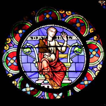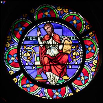 rose présente douze prophètes et prêtres entourant la Trinité. |