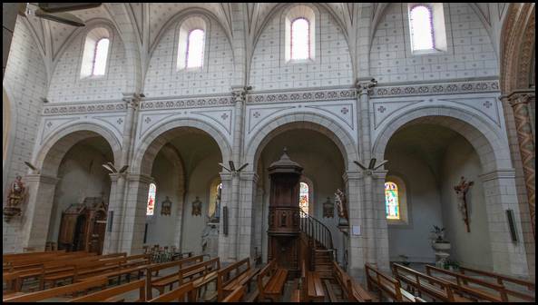 La nef est voûté de croisée d’ogive tandis que les bas-côtés sont