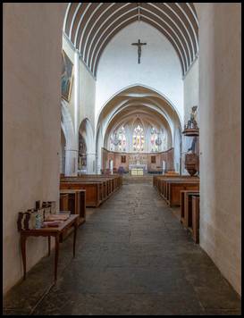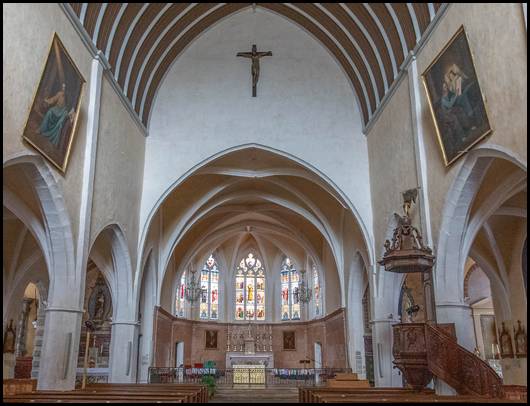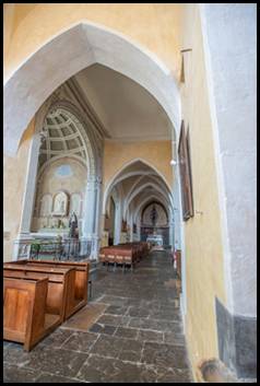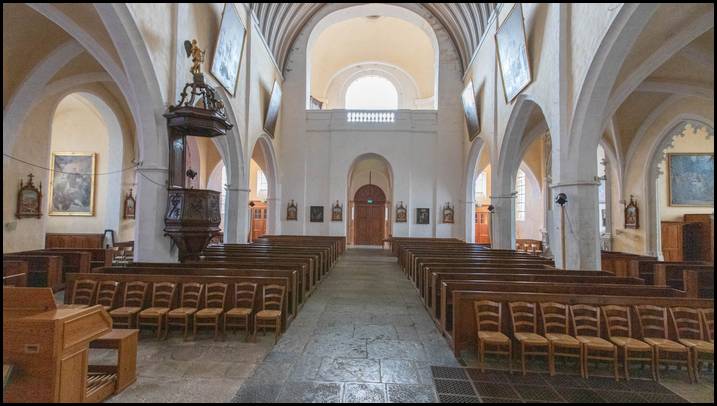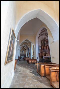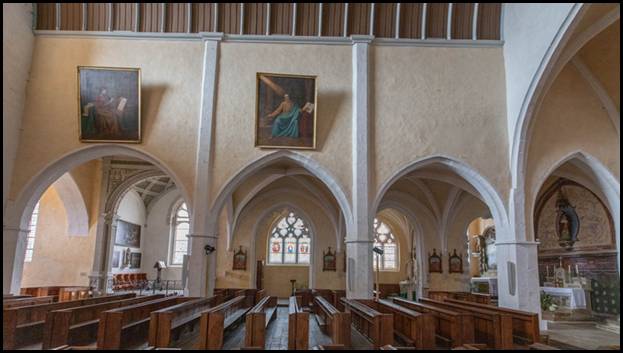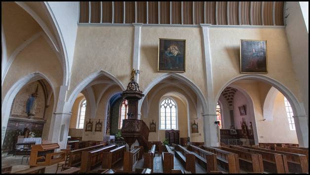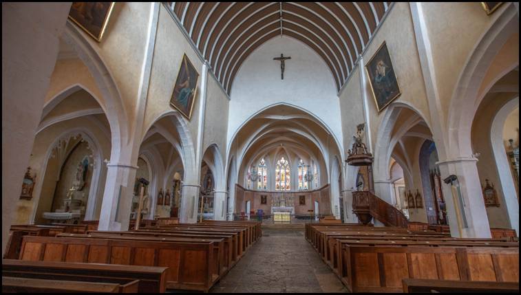 nef est un large vaisseau formé de quatre travées, qui s'ouvrent sur les
