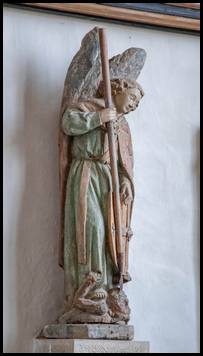 statue en bois polychrome de l'Archange Saint Michel est caractéristique de