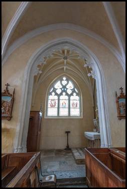 liturgique dans le mur à droite de l'autel, et la voûte à nervures aux