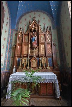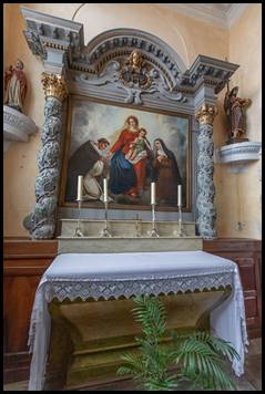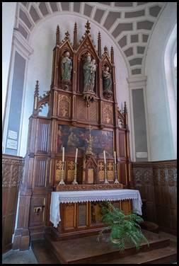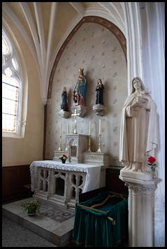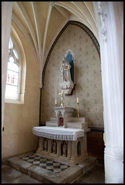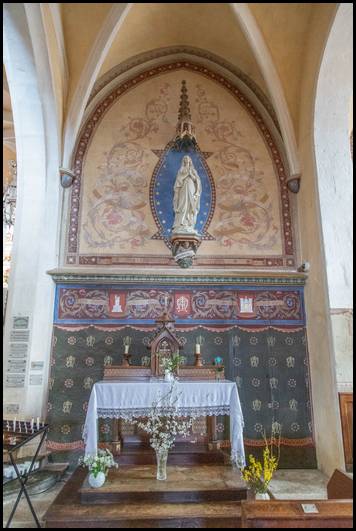 trilobés. L'autel néo-gothique est surmonté de la Vierge et sa mère Sainte