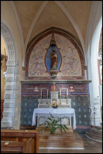 en bois peint et le retable d'époque Louis XIII qui le surmonte proviennent