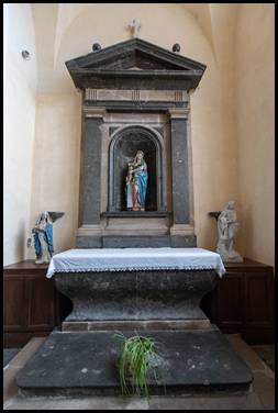 XIXe siècle et le retable assorti, de style néo-classique, sont en marbre. |