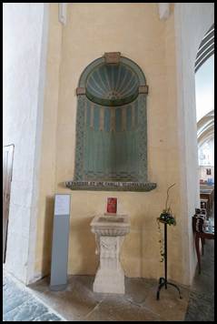 peintures en trompe-l'œil du début du XXe et surmontent des bénitiers de