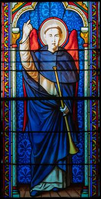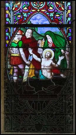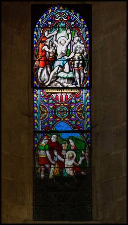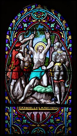 sur le bas côté nord, le vitrail dédié au martyr de Saint Marcel. |