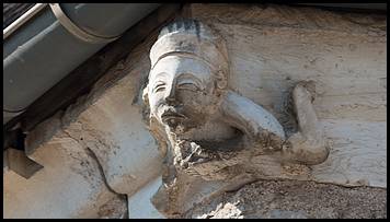 L’église est ceinturé par une corniche aux motifs sculptés, variés et curieux.