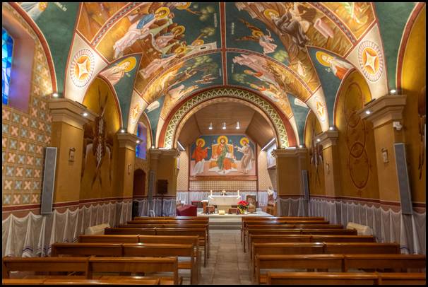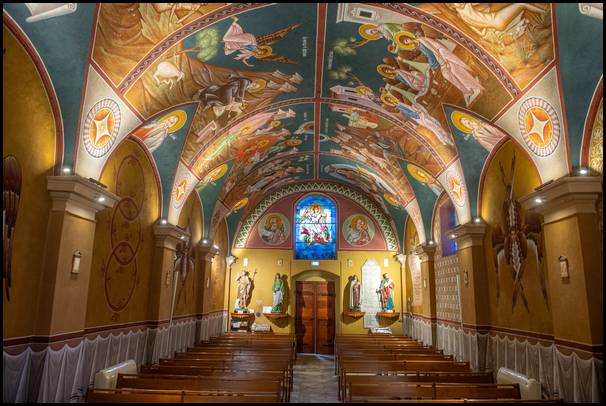est sobre, mais quand on pousse la porte, on découverte une église peinte par