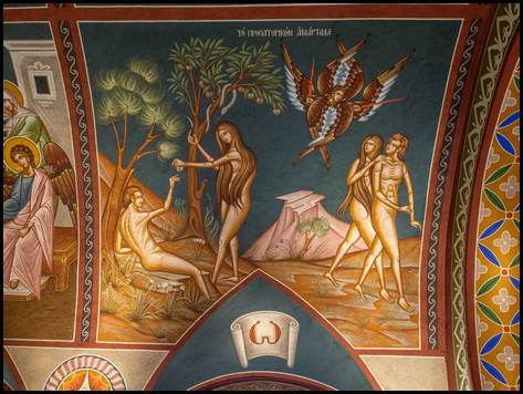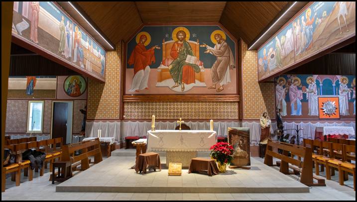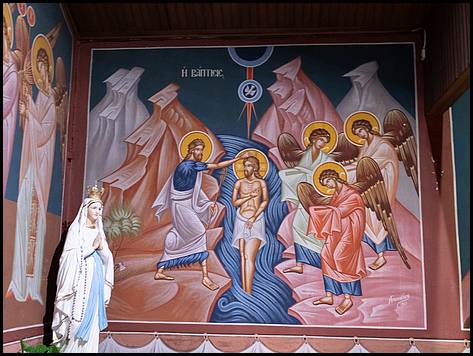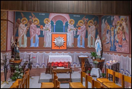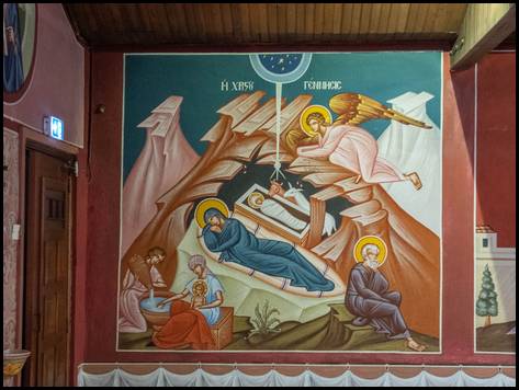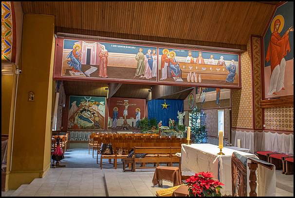 années 1980. Fresques néo-byzantines représentant les principales scènes de