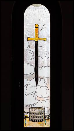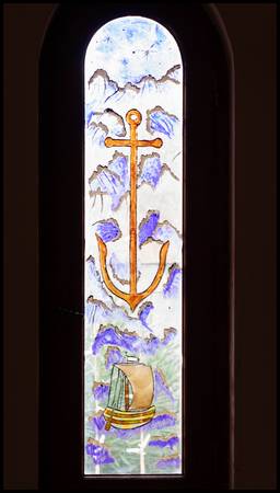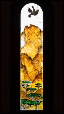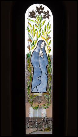 Ces beaux vitraux modernes ont été réalisés par la nièce du curé de l’époque, le Père Jean Marie Lafite.