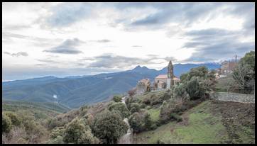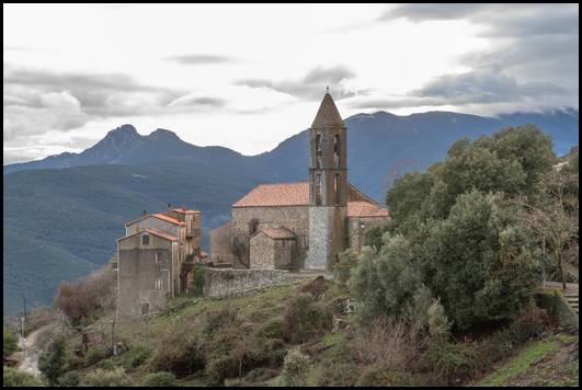 village perché, à quelques kilomètres de la côte, l’église San Ghjuvanni Evangelista domine le village avec son clocher de