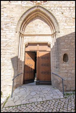 l'église à l'ouest par un portail gothique à tympan encadré d'un triple