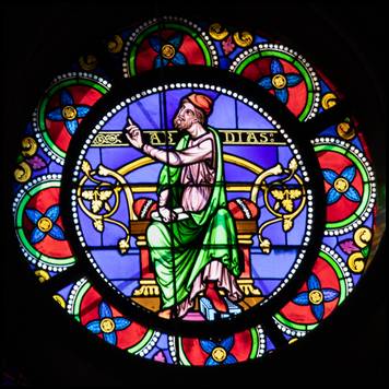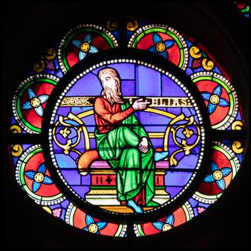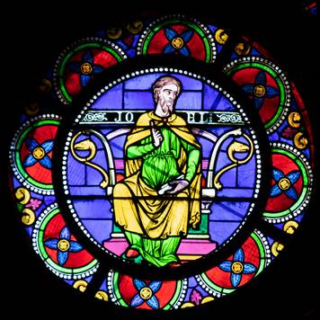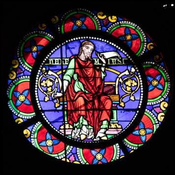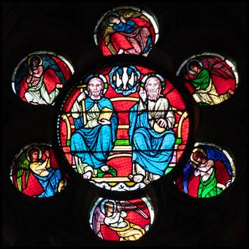 rose présente douze prophètes et prêtres entourant la Trinité. |