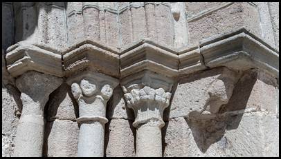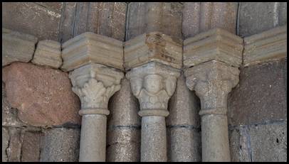 soutiennent les voussures médianes par des chapiteaux sculptés de feuilles et
