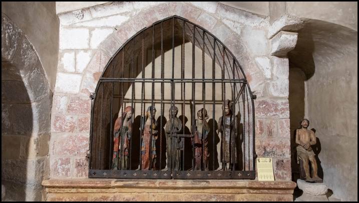 les vestiges d’une mise au tombeau du XVe siècle. Il reste 5 personnages de ce