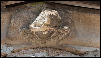 L’église est ceinturé par une corniche aux motifs sculptés, variés et curieux.
