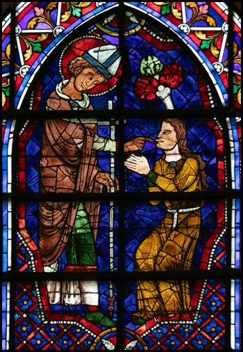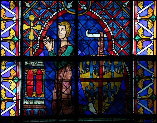 du premier quart du XIIIe siècle. Ce vitrail a été offert par Thibault VI qui