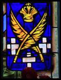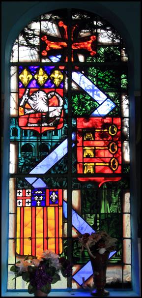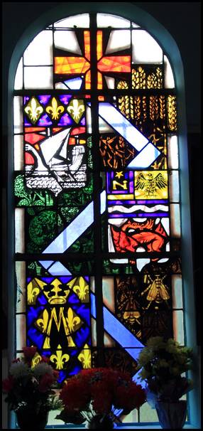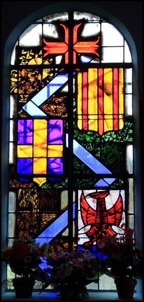 vitraux représentent la Route bleue. Sur chacun d’eux, une croix orange, un