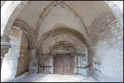 est ouvert sous une profonde voussure en plein cintre ornée de tores soutenus