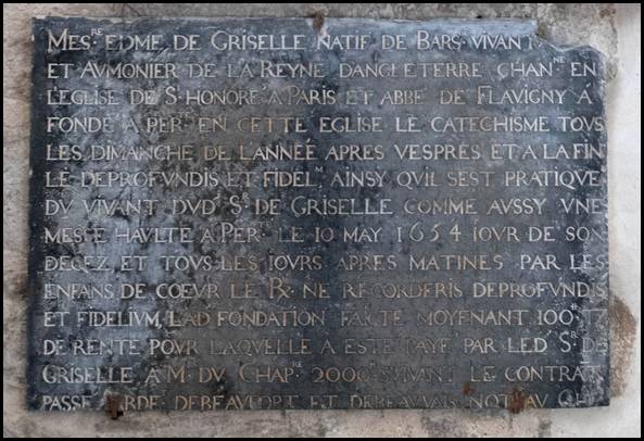 Plaque commémorative de fondation de Edme de Griselle XVIIe siècle |