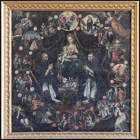 encadrée par les statues de Saint Dominique et de Saint Pie V. Il a été