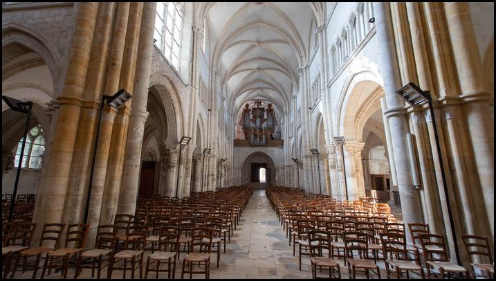 rappelle celui de l'abbatiale cistercienne de Pontigny. Sa grande toiture
