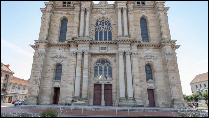 centrale et ses colonnes en saillie. . La façade est achevée en 1675, la tour