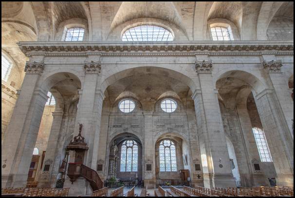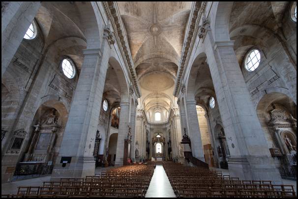 terminée en 1704. Elle est bordée de collatéraux de quatre chapelles chacun |