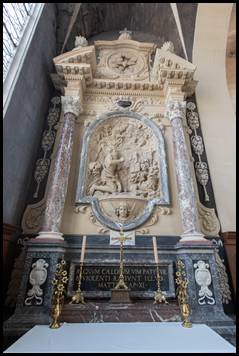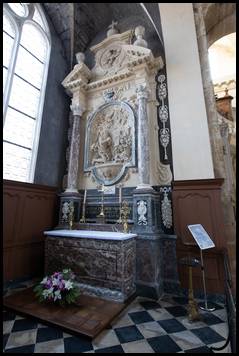 face de l’autel, le monument funéraire en pierre, et marbre sculpté est celui