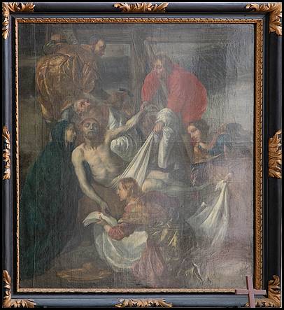 au-dessus du confessionnal, le tableau de la «Descente de Croix», réalisé au