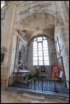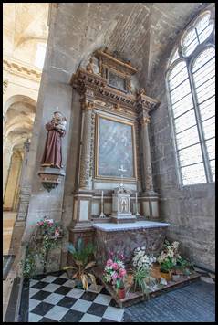 est l'ancienne chapelle des Fonts baptismaux. Autel en