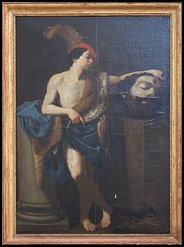 XVIIe représentant David contemplant la tête de Goliath d'après Guido Reni. |
