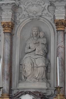 absidiale, où repose le Saint Sacrement, est dédiée à la Vierge. Ancien maître-autel,