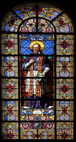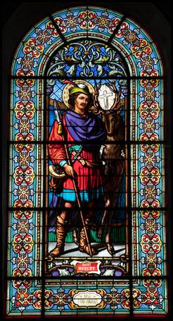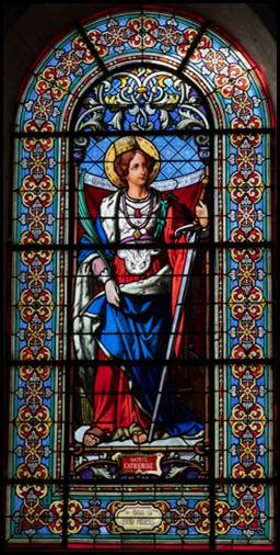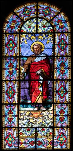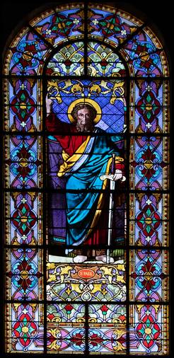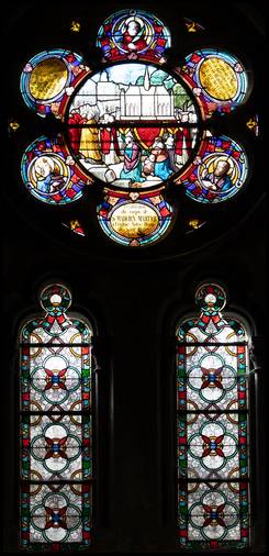 la chapelle sous le clocher, où se trouve le Saint Sépulcre, le vitrail a été