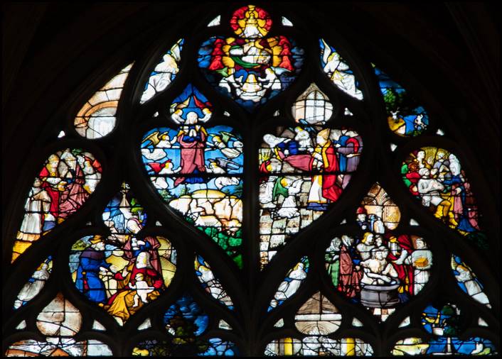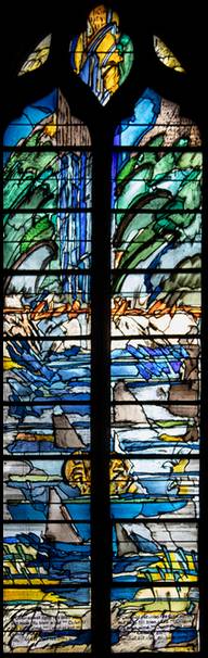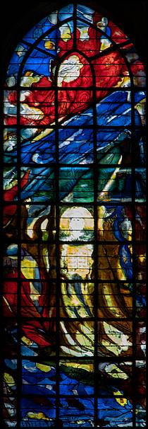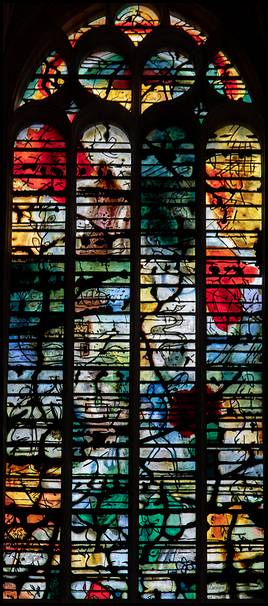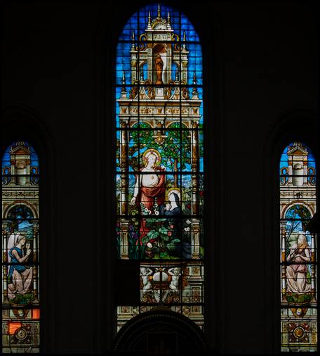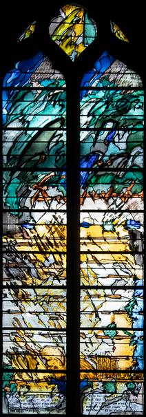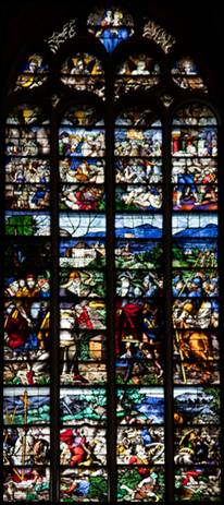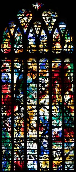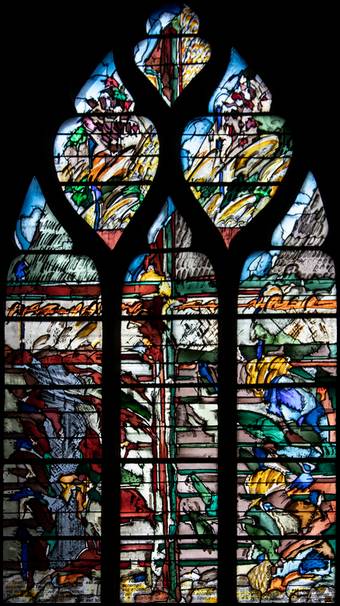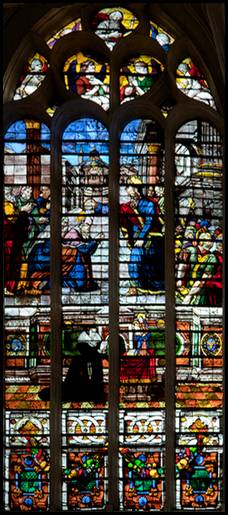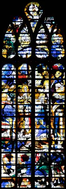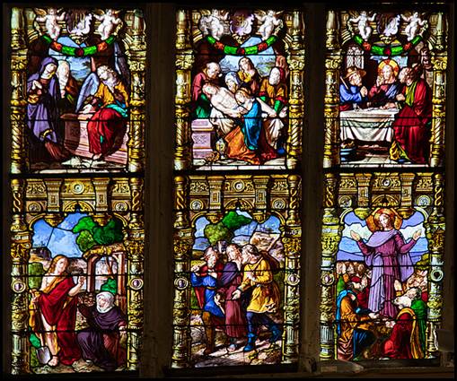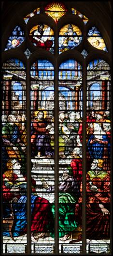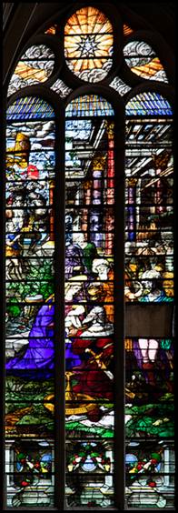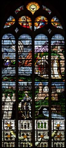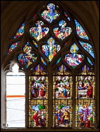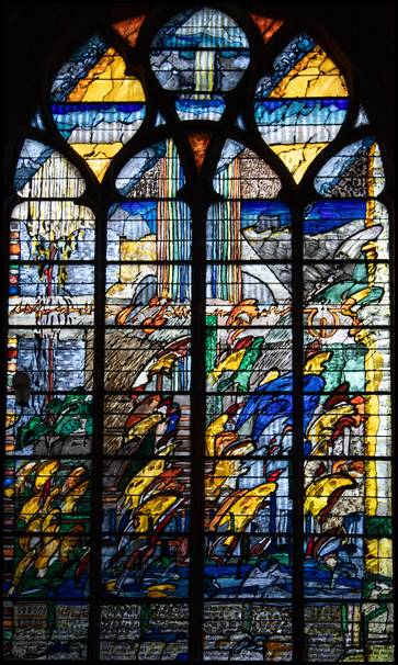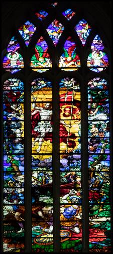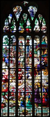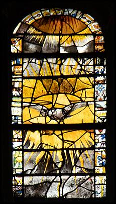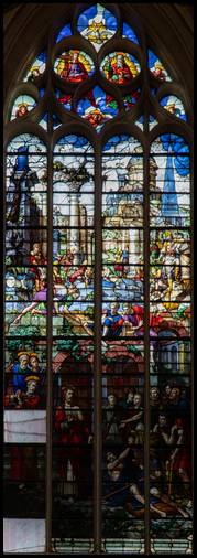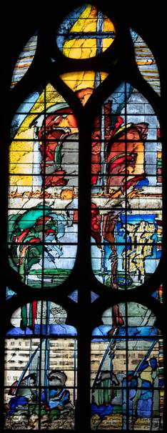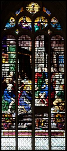 chapelle Sainte Catherine, la verrière réunie trois sujets divers. Vitrail du