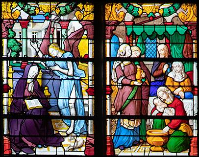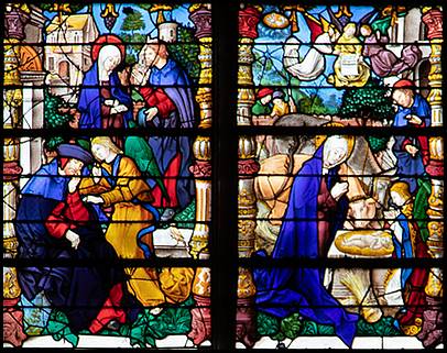 vie de la Vierge en trois verrières du XVIe siècle complétées et restaurées