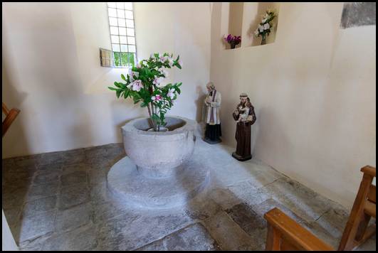 Le baptistère est constitué d’un beau bassin en granit posé sur une meule de
