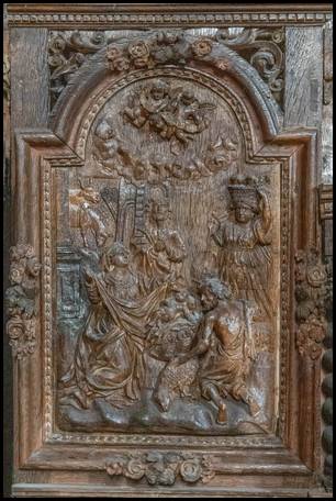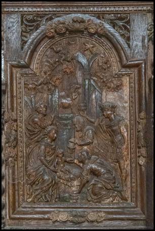 rectangulaires sculptés en bas-relief, dans des encadrements : L'adoration