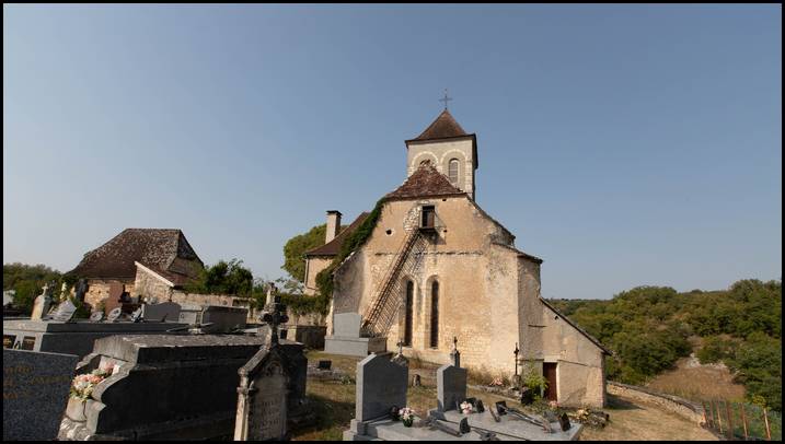 se situe sur le chemin de pèlerinage de Rocamadour en haut du village,