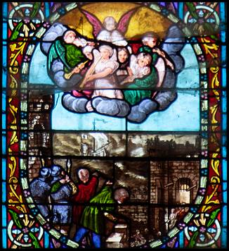 vitraux relatent l’histoire du Saint Suaire. Cette