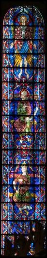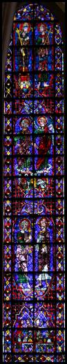 verrière date du premier quart du XIIIe siècle. Composée de 4 registres, elle