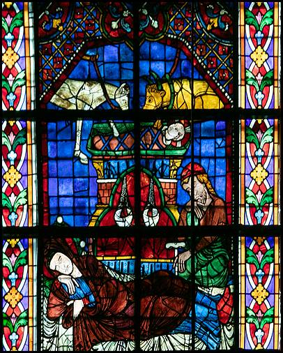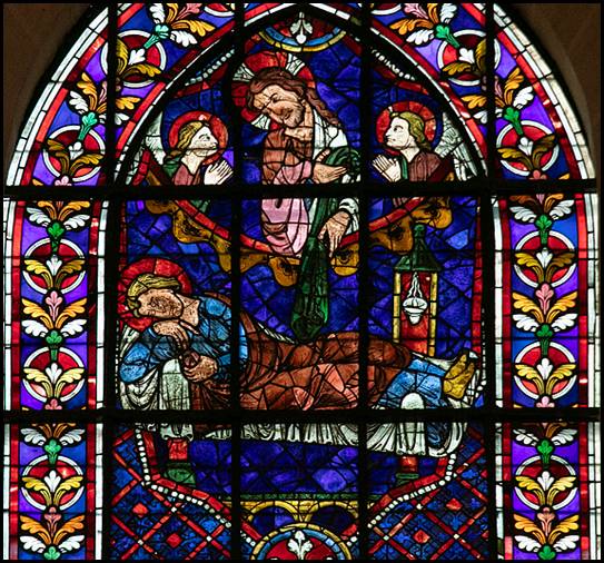du premier quart du XIIIe siècle. Ce vitrail a été offert par Thibault VI qui