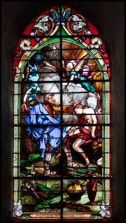 à droite, le sacrifice d'Isaac où l'on voit Abraham prêt à sacrifier son fils