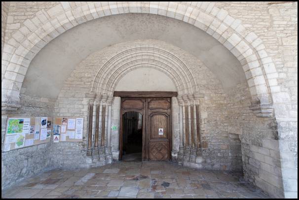 est ouvert sous une profonde voussure en plein cintre ornée de tores soutenus
