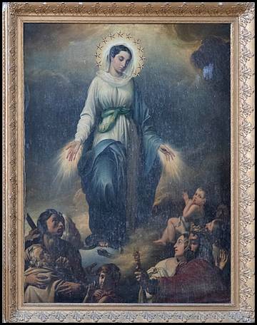 Vierge, retable néogothique du XIXe siècle. La statue de la Vierge est