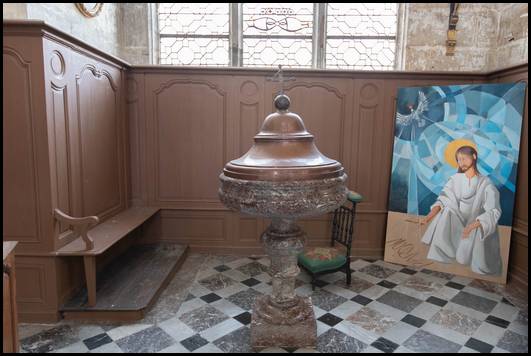 est l'ancienne chapelle des Fonts baptismaux. Autel en
