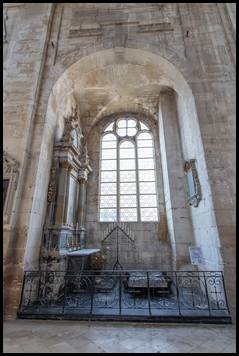 face de l’autel, le monument funéraire en pierre, et marbre sculpté est celui
