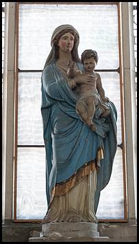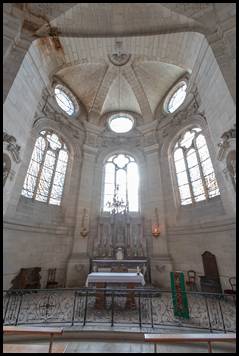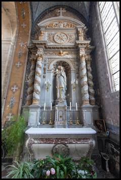 absidiale, où repose le Saint Sacrement, est dédiée à la Vierge. Ancien maître-autel,