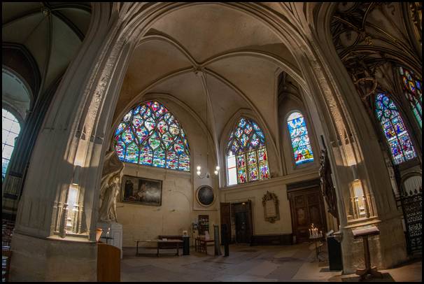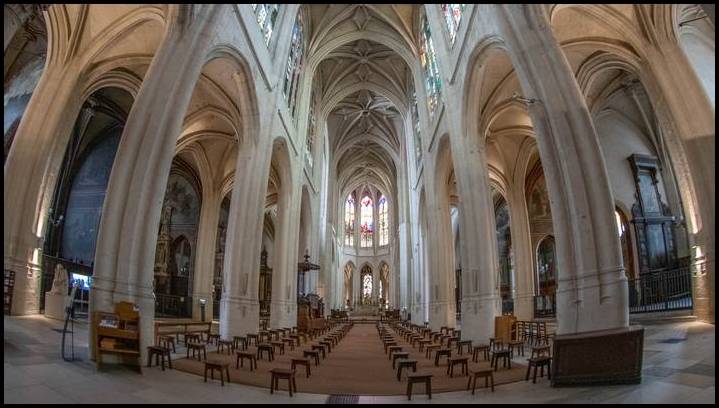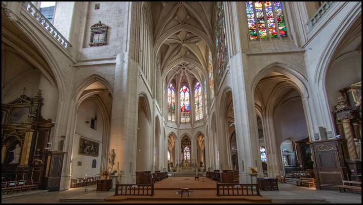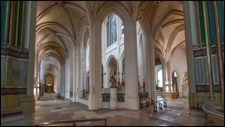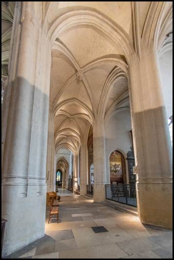 coupées. Elle est bordée de bas côtés et de chapelles. |